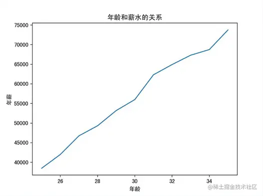 上述代码通过 xlabel 函数添加横坐标代表的含义,通过 ylabel 函数添加纵坐标代表的含义,通过 title 函数添加图形的标题。添加上述信息之后的图形如下图所示: