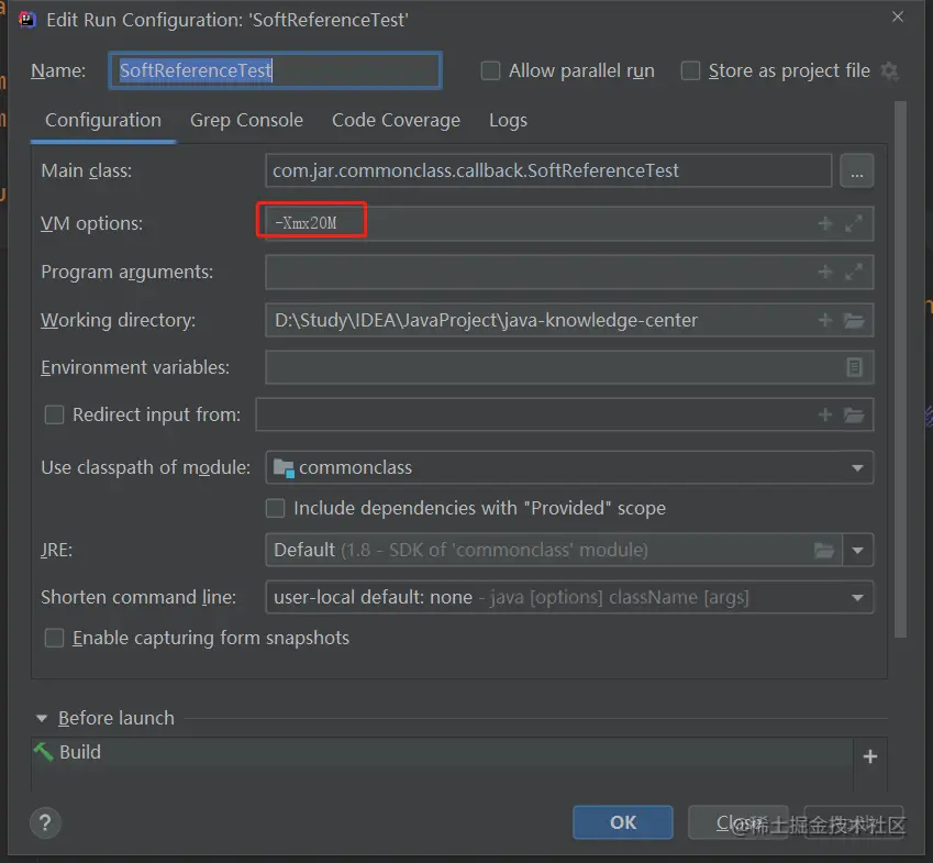 设置最大运行内存20M,目的是模拟我们的内存空间就20M,这里解释下常用的参数,在我们jvm调优的时候都会用到: