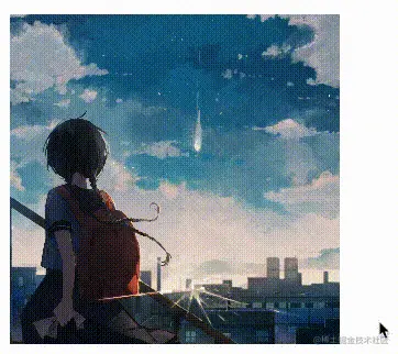 --transition-time的值一开始是 1,所以乘以 (Math.random() + 1) 的值也必然大于 1,而最终在过渡过程中--transition-time会逐渐变为 0, 整个表达式的值也最终会归于 0 - 由于上述 (3)的值控制的是每一个 mask 小格子的透明度,也就是说每个格子的透明度都会从一个介于 1 ~ 2 的值逐渐变成 0,借助这个过程,我们完成了整个渐隐的动画