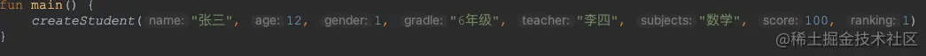 函数调用的调用跟Java类似,也是helloFunction("Kotlin")的方法,但是如果存在多个参数的情况下就会出现如下情况