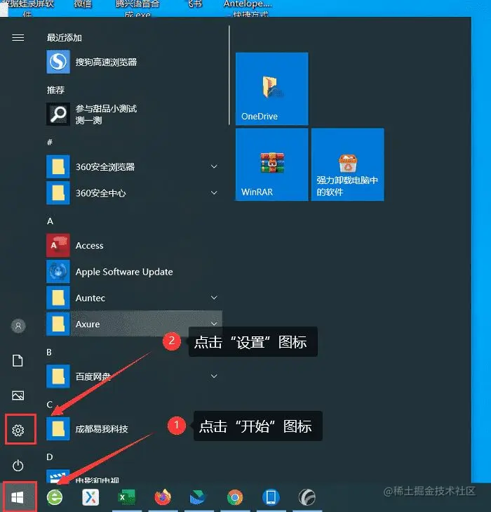 打开电脑,在电脑桌面左下角点击【开始菜单】,在弹出的窗口,点击【设置】选项,即齿轮样式的图标。如下图: