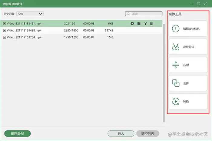 其次,数据蛙录屏软件是一块免费的录屏软件,能够支持免费使用,使用不限制录制时长,并且拥有多种媒体工具可以对录制好的视频进行处理,如“视频压缩”、“视频合并”、“视频转化”等等。