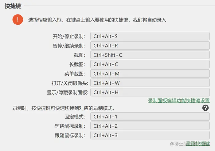 可以自由地设置录屏快捷键,也可以使用默认的录屏快捷键【ctrl+alt+s】开始和停止录屏。