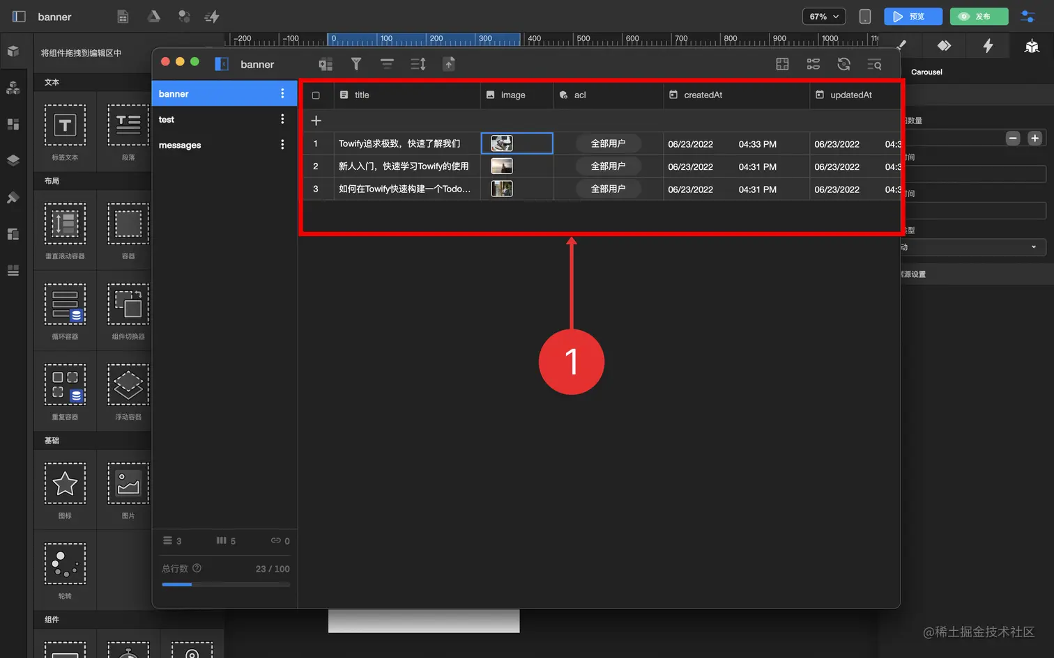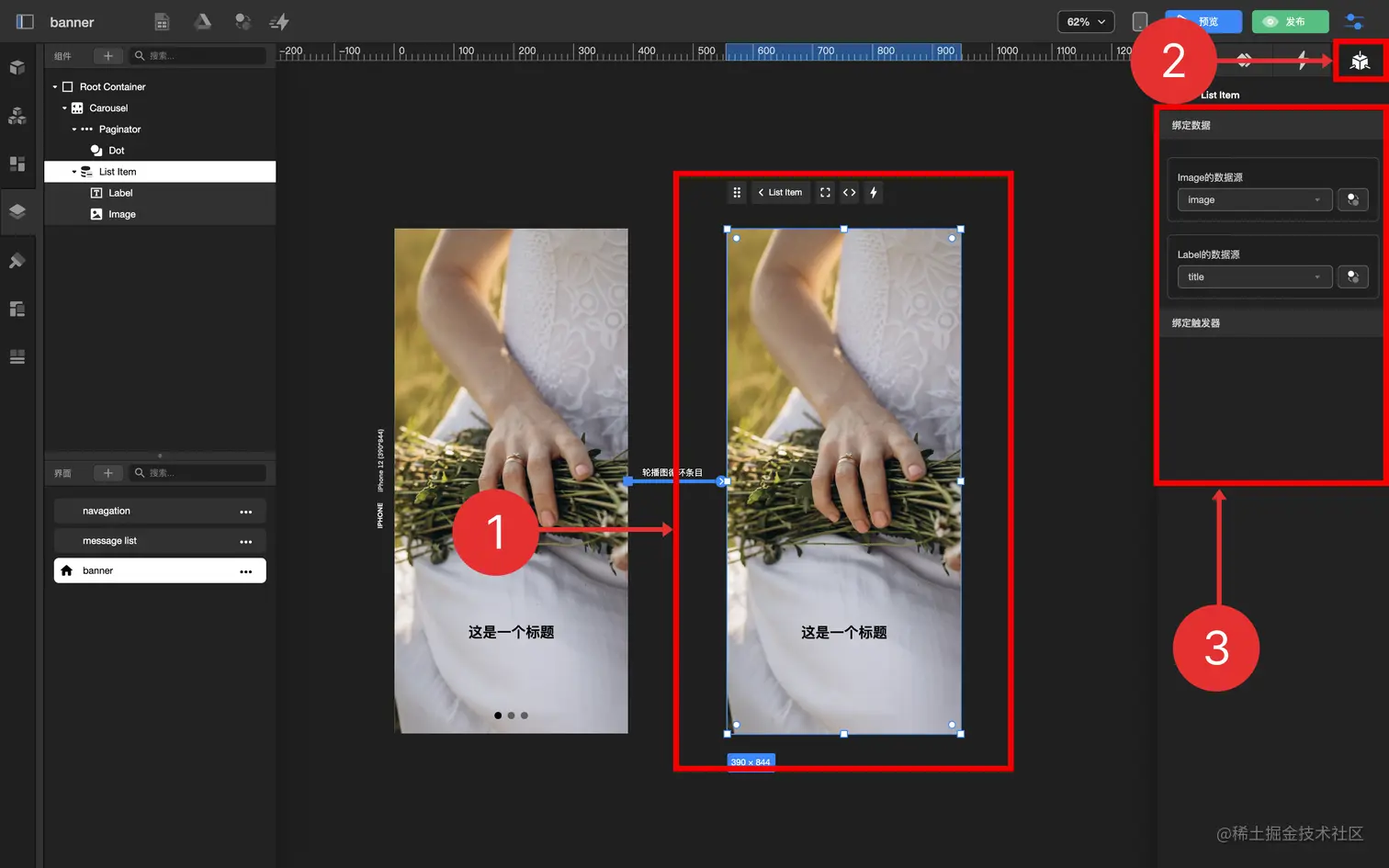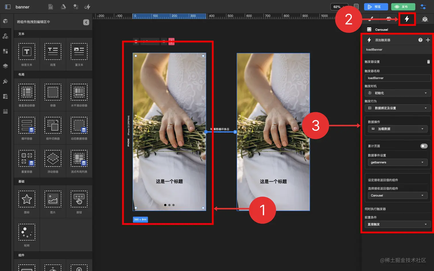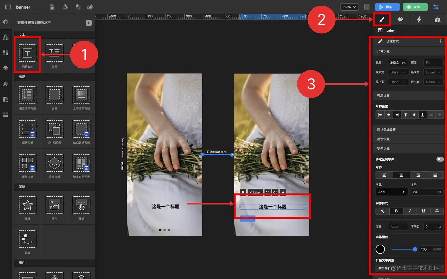 3.1 拖拽 标签文本组件 到 轮播图条目