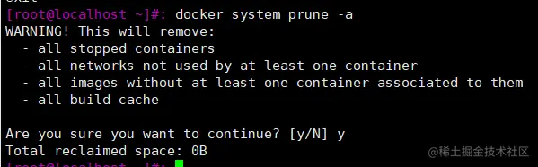 docker system prune -a #可以用于清理磁盘,删除关闭的容器、无用的数据卷和网络