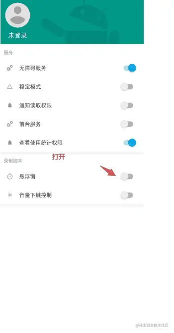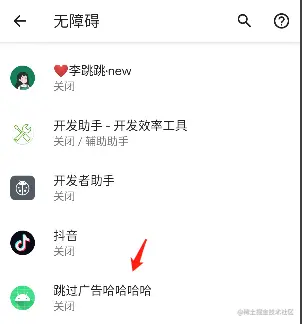 二选一配置完毕后,运行APP,然后依次打开手机 (不同手机系统会有些许差异):设置 → 无障碍 → 找到我们的APP → 显示关闭说明无障碍服务没起来,点开: