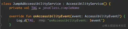 Log.d(TAG, "onAccessibilityEvent:$event")
