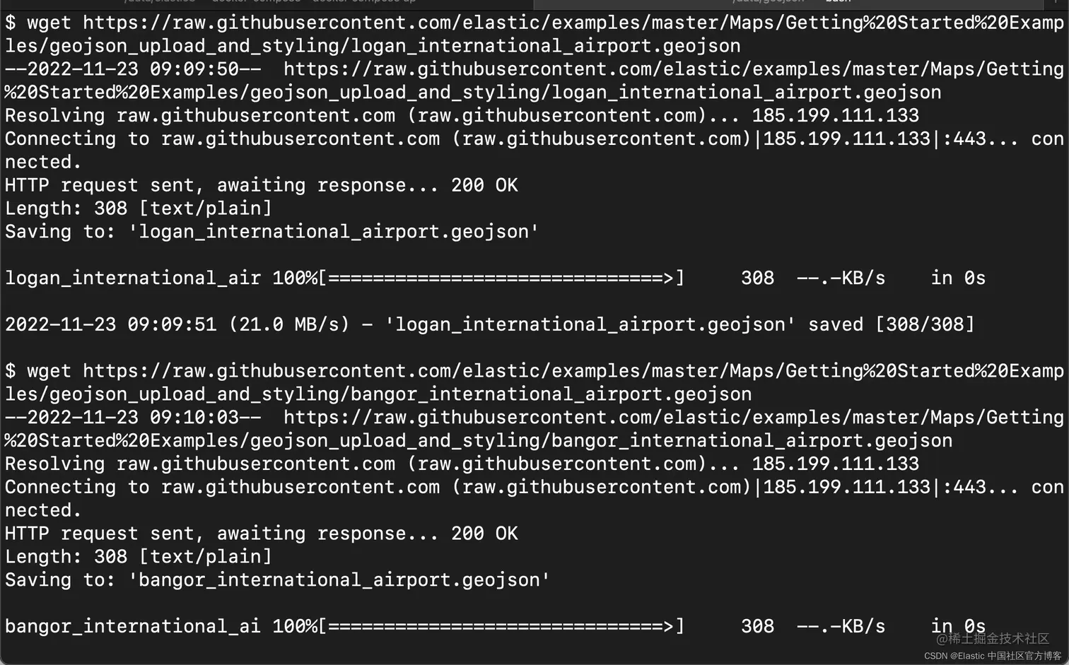本教程要求你下载以下 GeoJSON 示例数据文件。 这些文件是你可以上传到 Kibana 并在 Elasticsearch 中建立索引以便在地图中显示的矢量数据类型的很好示例。
