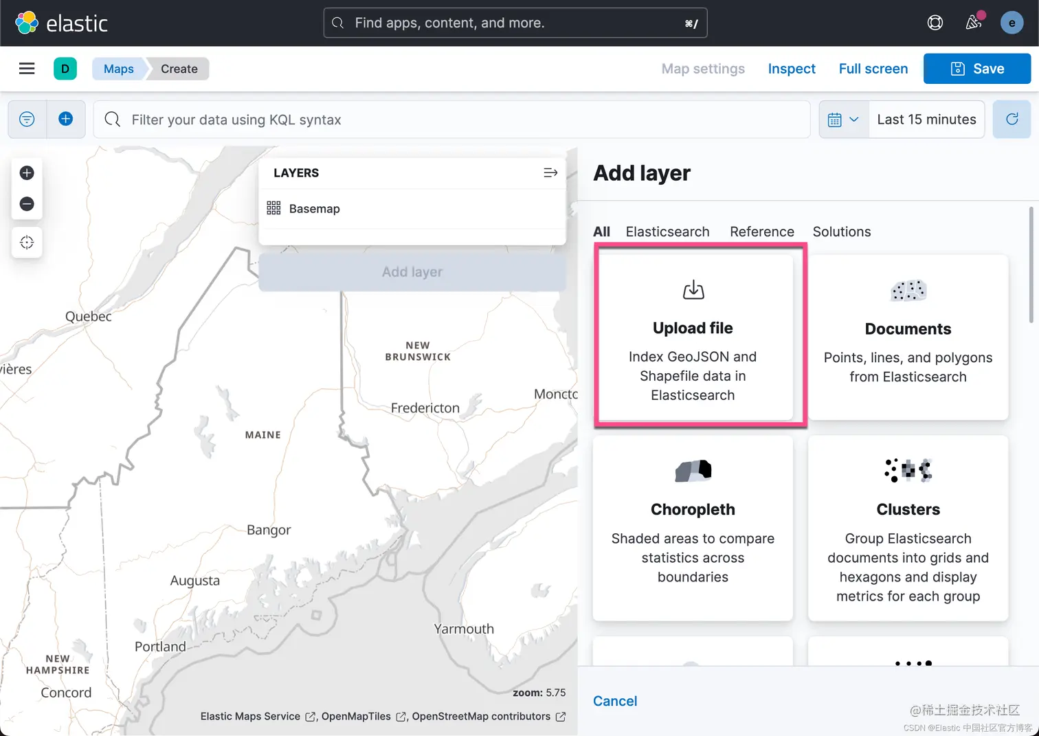 GeoJSON 支持以下几何类型:Point、LineString、Polygon、MultiPoint、MultiLineString 和 MultiPolygon。 具有附加属性的几何对象是特征对象。 特征集包含在 FeatureCollection 对象中。GeoJSON 可以用于 Elastic Maps 应用中。