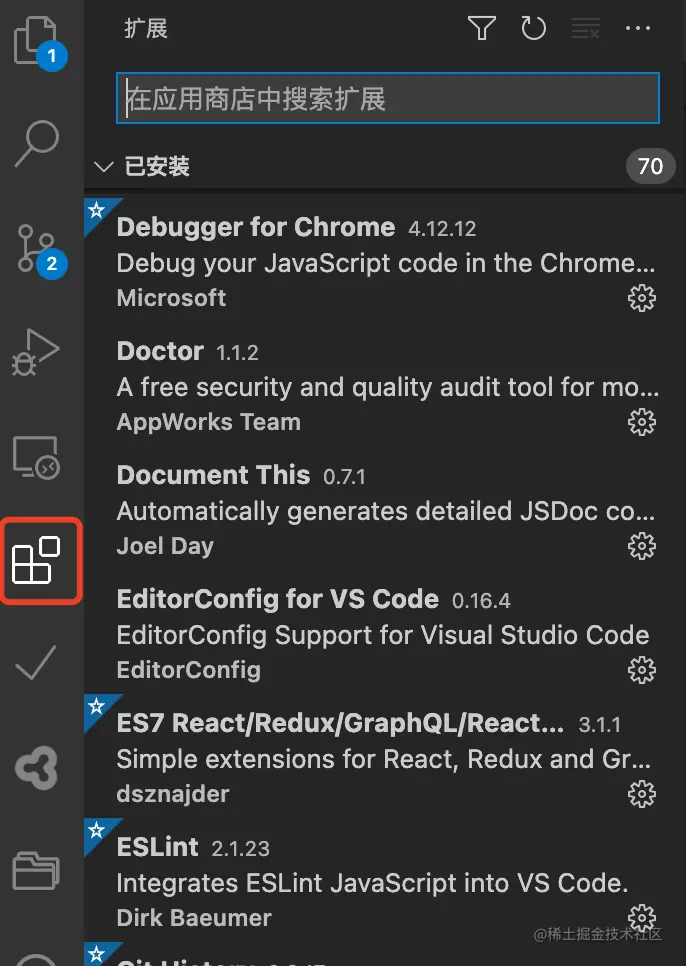 VS Code 的强大之处是一切功能都可以基于插件来实现,IDE 只提供最基本的框架和基本功能。可以通过侧边栏的插件入口来直接安装插件,也可以官方的应用商店来安装插件。