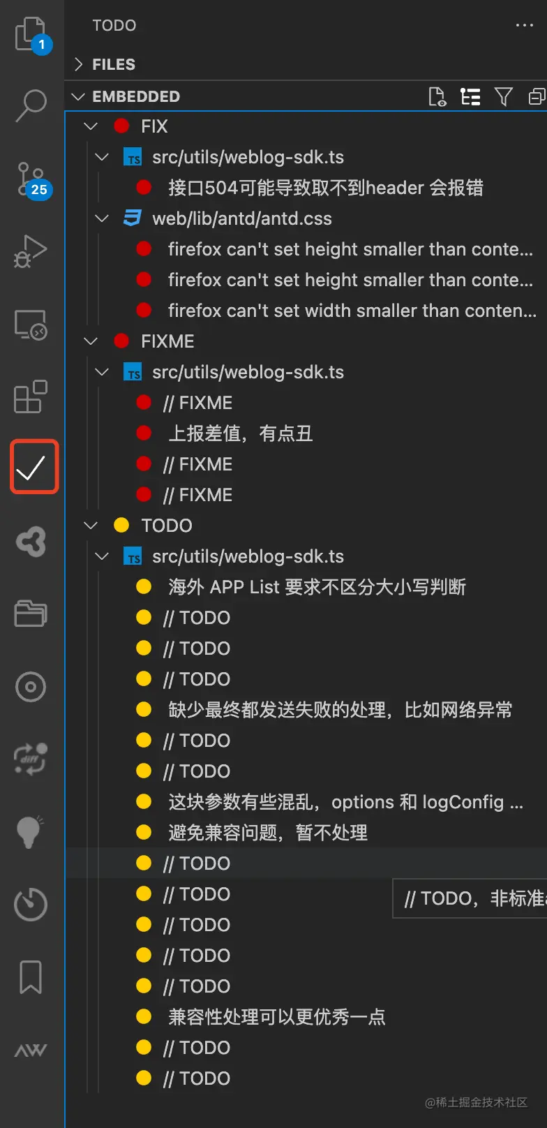 如Todo+插件在左侧面板中提供的展示项目中的 TODO 项,如埋点管理插件在左侧定义了埋点列表等。