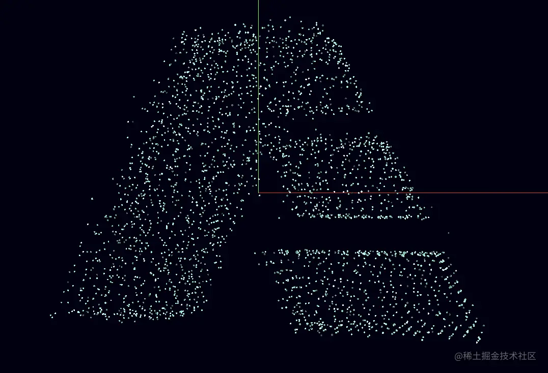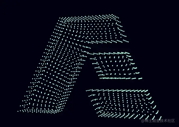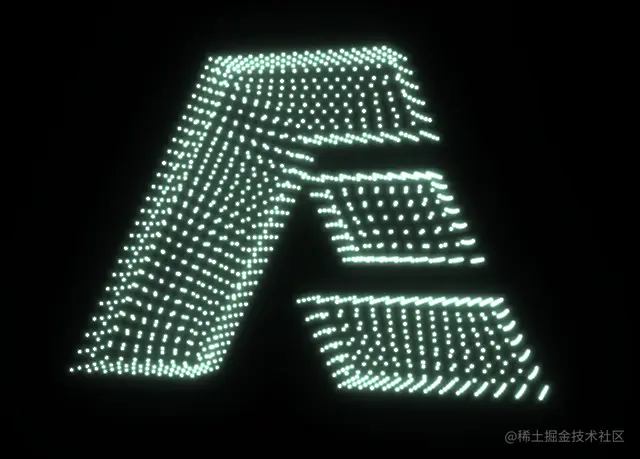 最开始看到的粒子 LOGO 的实现原理是将一个 3D 模型的顶点(vertices)一一对应到生成的粒子坐标中,可以理解为加载模型的目的是获取到粒子的坐标和数量。所以生成粒子的 LOGO 的步骤如下: