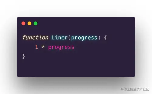我们将 currentTime/totalTime 提取出来 进行归一化为 progress 参数, **(point(终)-point(始)) ** 提取出来作为计算差值 delta,则可以推导出当前位置的计算差值比例和时间的关系为线性关系