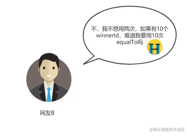 你可以用再次equalTo(),对winnerId[0]用一次,对winnerId[1]用一次。