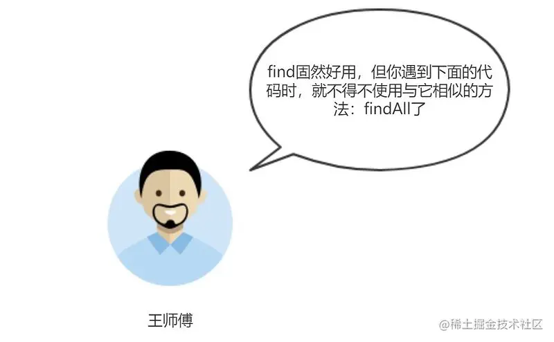 对的,这时候应该使用findAll,可以粗鲁的认为多个find的叠加。findAll可以筛选出一批符合要求的数据,而 find只能筛选出一个符合要求的数据,这就像是我们只能挑出一个人领取一等奖,但有很多人可以拿参与奖, 两个方法都有自己的用武之地。