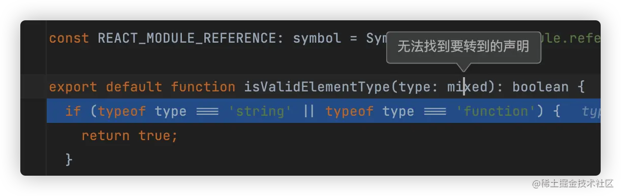1、当前我们跨项目进行调试(源码在react项目中,我们的项目在另外一个文件中),导致类型管理出现问题, 这是基于开发项目的定义管理,不同编辑器表现不同.