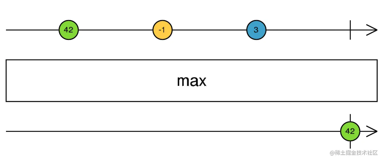 max:找最大值,对比数字型Observable产生最大的新的Observable。