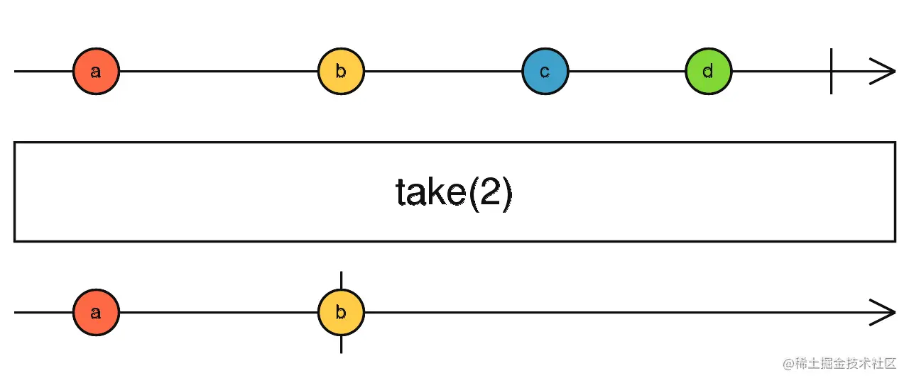 take:只取前n个Observable。