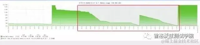 另外,上图中,蓝框内内存一直在很低的状态,后面却突然升高了那么多。这里也是要分析的重点。