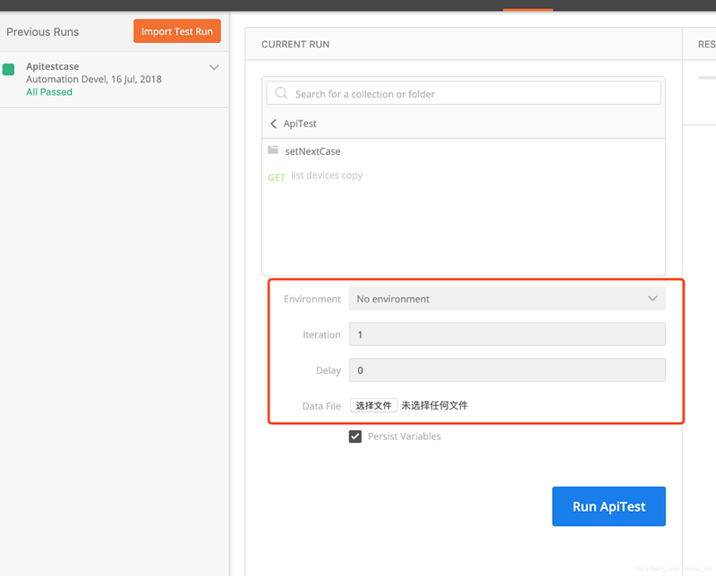 以上准备就绪后,我们就可以开始批量运行接口进行测试了:点击Run 后,会新打开一个页面: