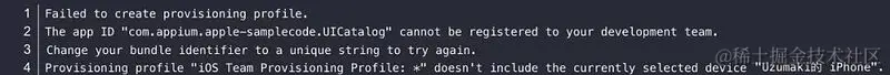 这是因为你的 bundle identifier 不唯一导致,将其修改自定义为一个唯一的 bundle identifier 再尝试即可