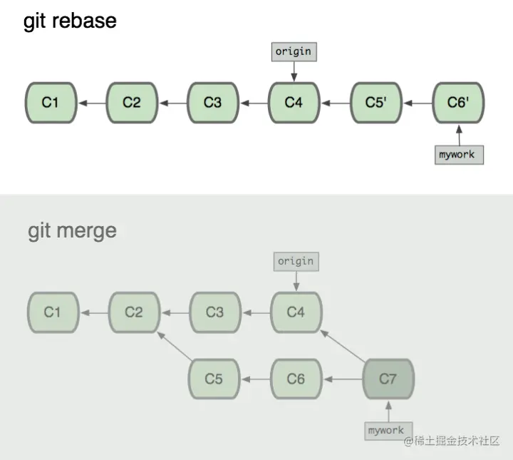 git rebase可以优化提交记录,让提交都在一条时间线上。 - 利用