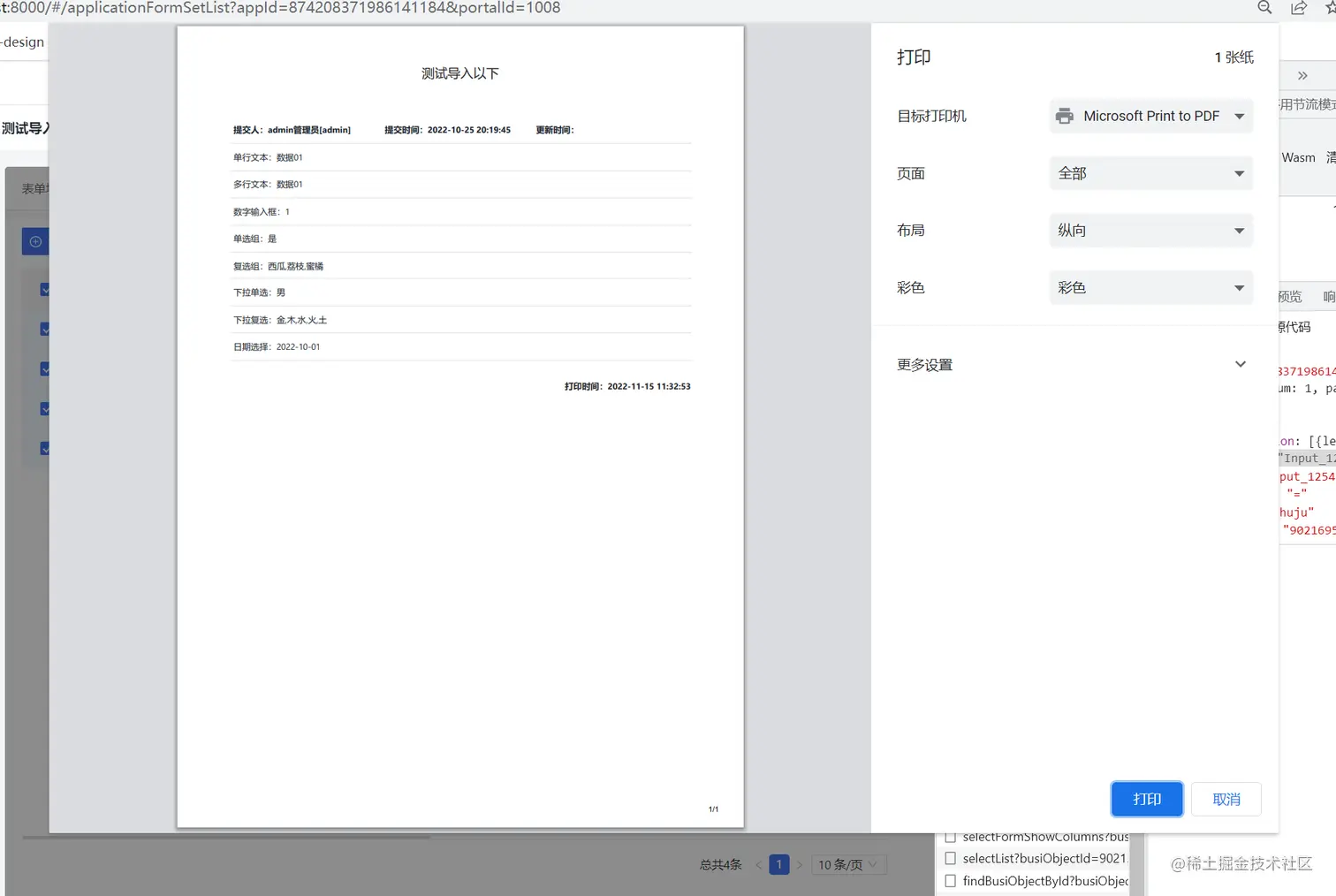 现在,我们就知道了要打印的是 id 为printModalContent的区域的内容,那我们就根据内容区域的innterHTML实现获取指定区域的内容