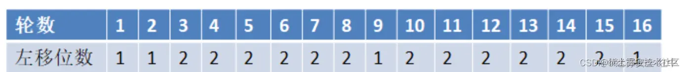 但是左移的位数也不是不变的,需要根据循环的轮数相应移位