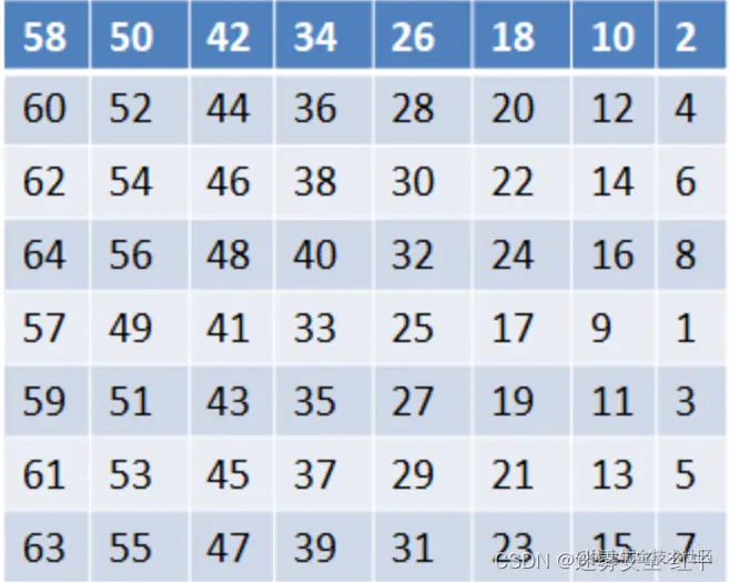 其实IP置换的原理很简单,只需要照着下面的表,把数填进去就行。