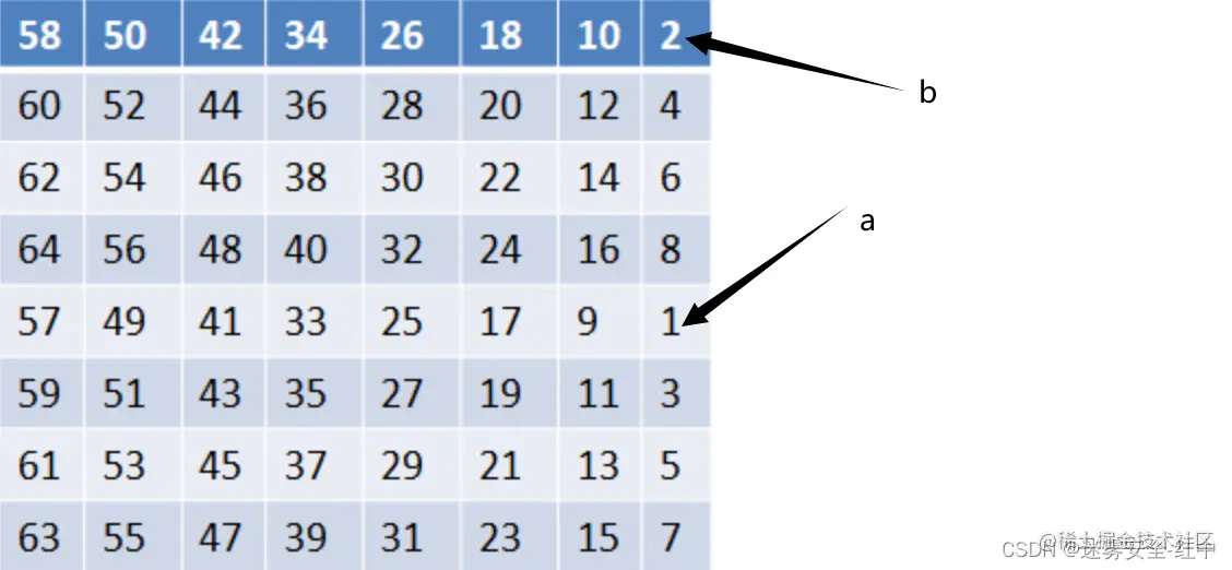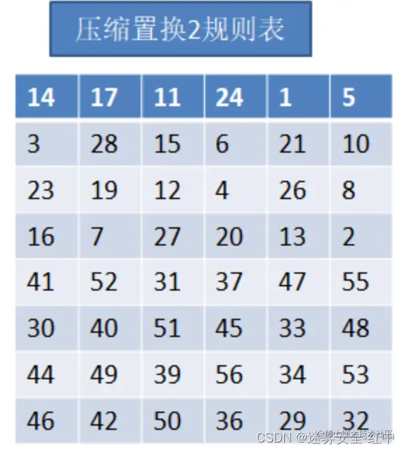 然后类似于初始置换,根据下面的子密钥交换规则表,将数据填到对应的位置即可