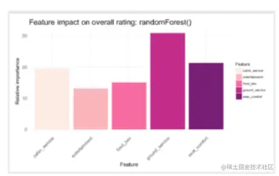 根据Breiman算法,地面服务是预测客户飞行总体评分的最重要变量,其次是座椅舒适度,客舱服务,食品和饮料以及娱乐(按此顺序)。