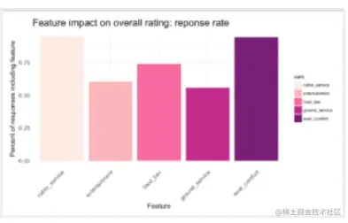 探索了机舱服务,娱乐,食品和饮料,地面服务和座椅舒适性五个变量中的每一个,并且通过所有这些导致以下观察: