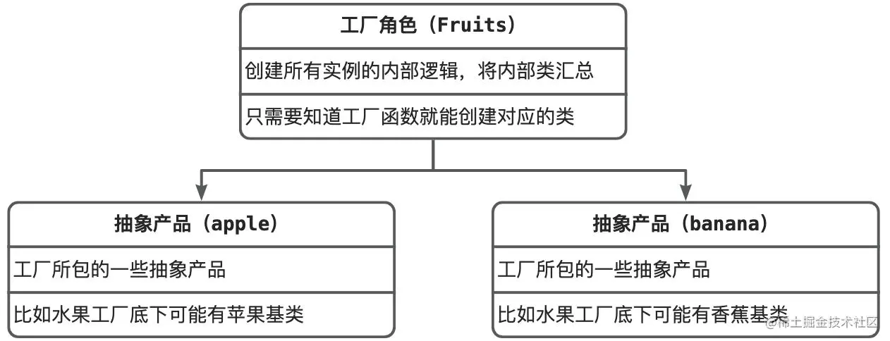 我们在使用的时候只需要new Fruits,传入你想实例化的内容,就能够得到相应的水果实体