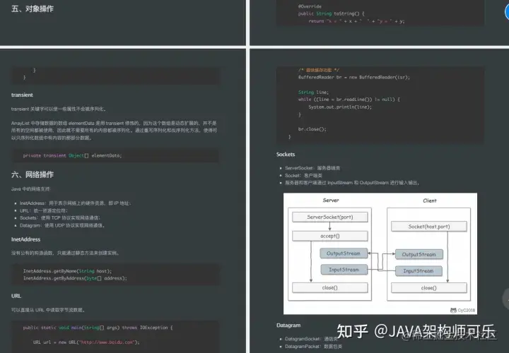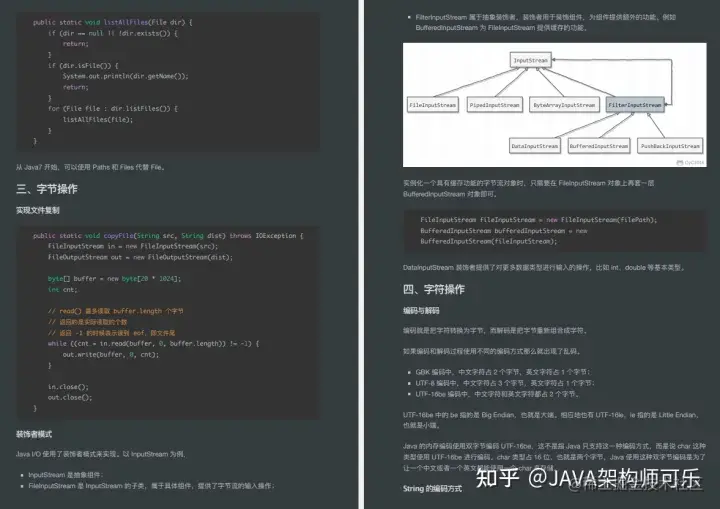 此章节分为6个小节包含概览,磁盘操作,字节操作,字符操作,对象操作,⽹络操作,NIO