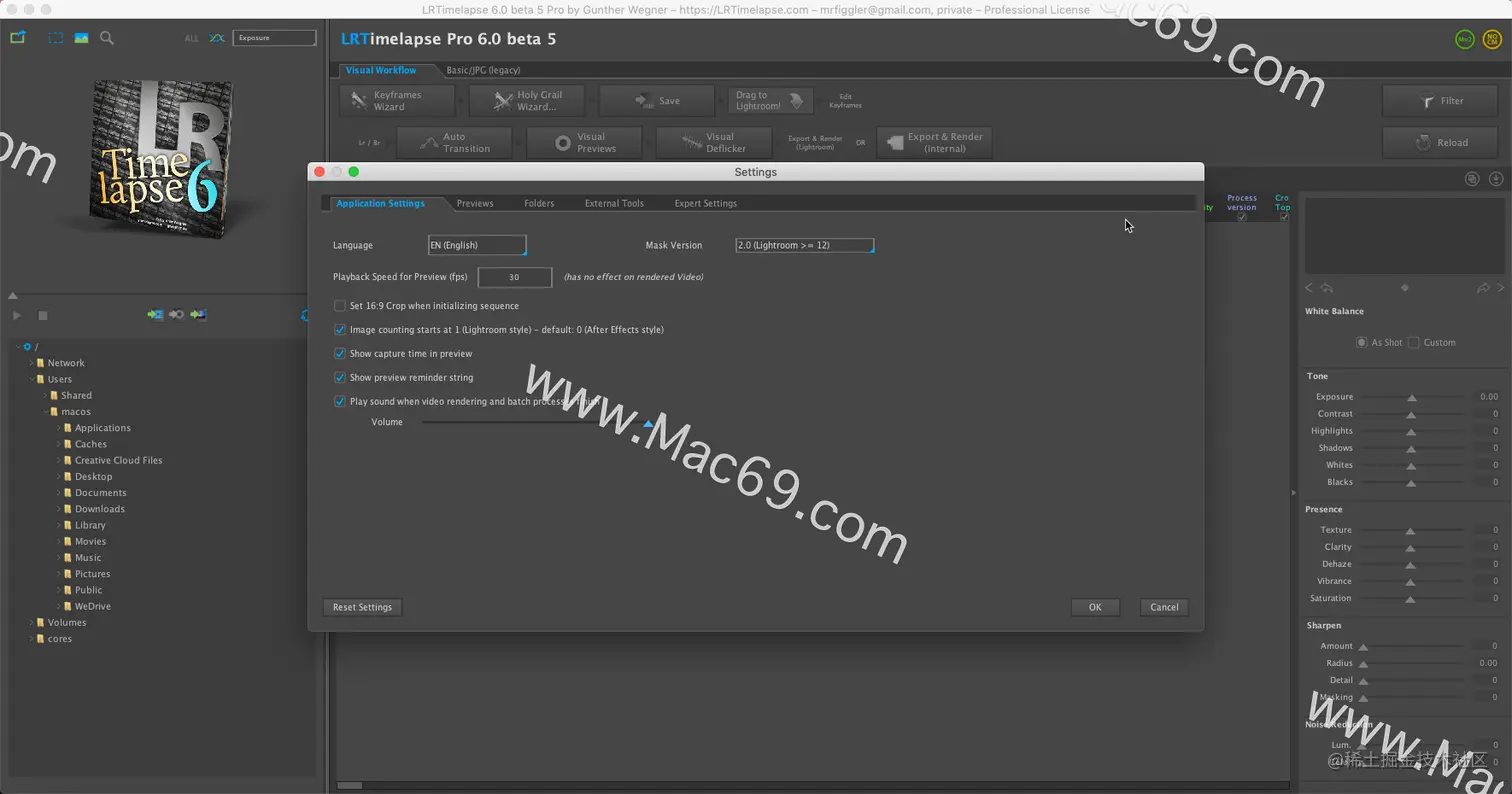 lrTimelapse for Mac是一款功能强大的延迟摄影渲染工具,能够帮助用户轻松的制作出时间推移的电影效果,软件可配合Adobe Lightroom、Adobe Camera RAW 和 Adobe After Effects等程序使用,支持动画和关键帧曝光,白平衡和其他任何Lightroom编辑工具。您可以使用Lightroom / ACR的全部潜力进行调色,甚至还可以制作渐变,径向和油漆刷子过滤器,给你最好质量的电影。