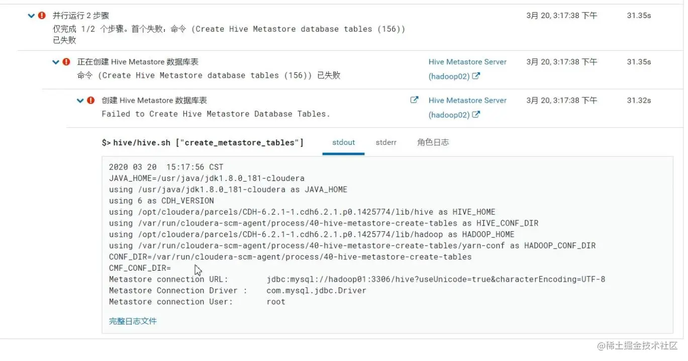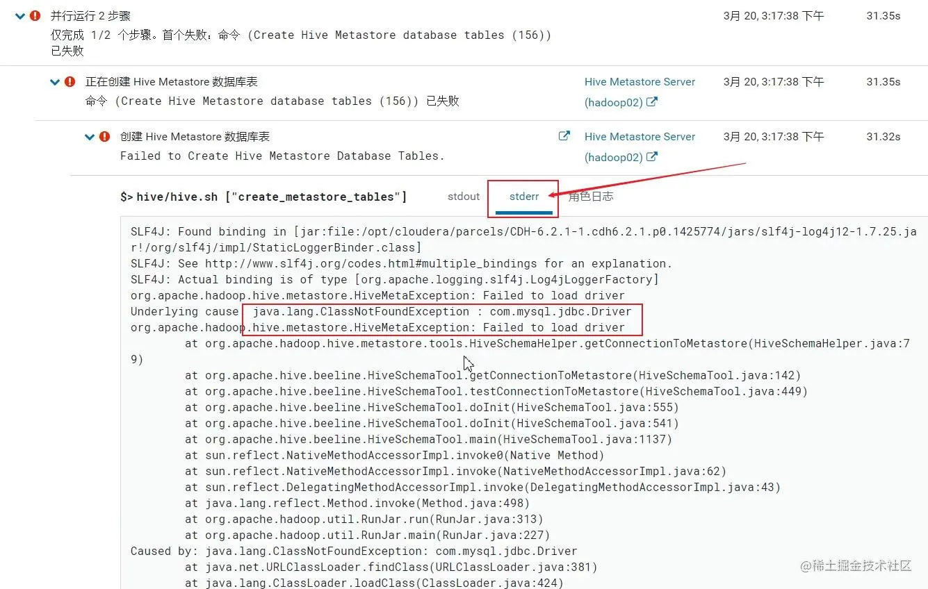提示:java.lang.ClassNotFoundException: com.mysql.jdbc.Driver 之前是CM找不到驱动,现在是Hive找不到mysql驱动: