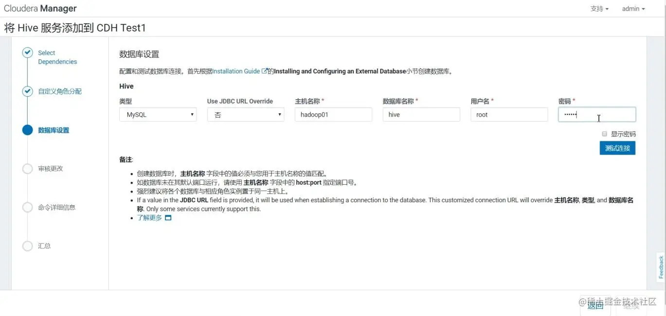 - 设置元数据库为mysql--前提是安装ClouderaManager Server服务