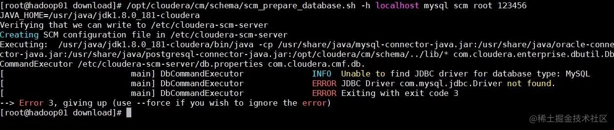 /usr/share/cmf/schema/scm_prepare_database.sh -h localhost mysql scm root 123456