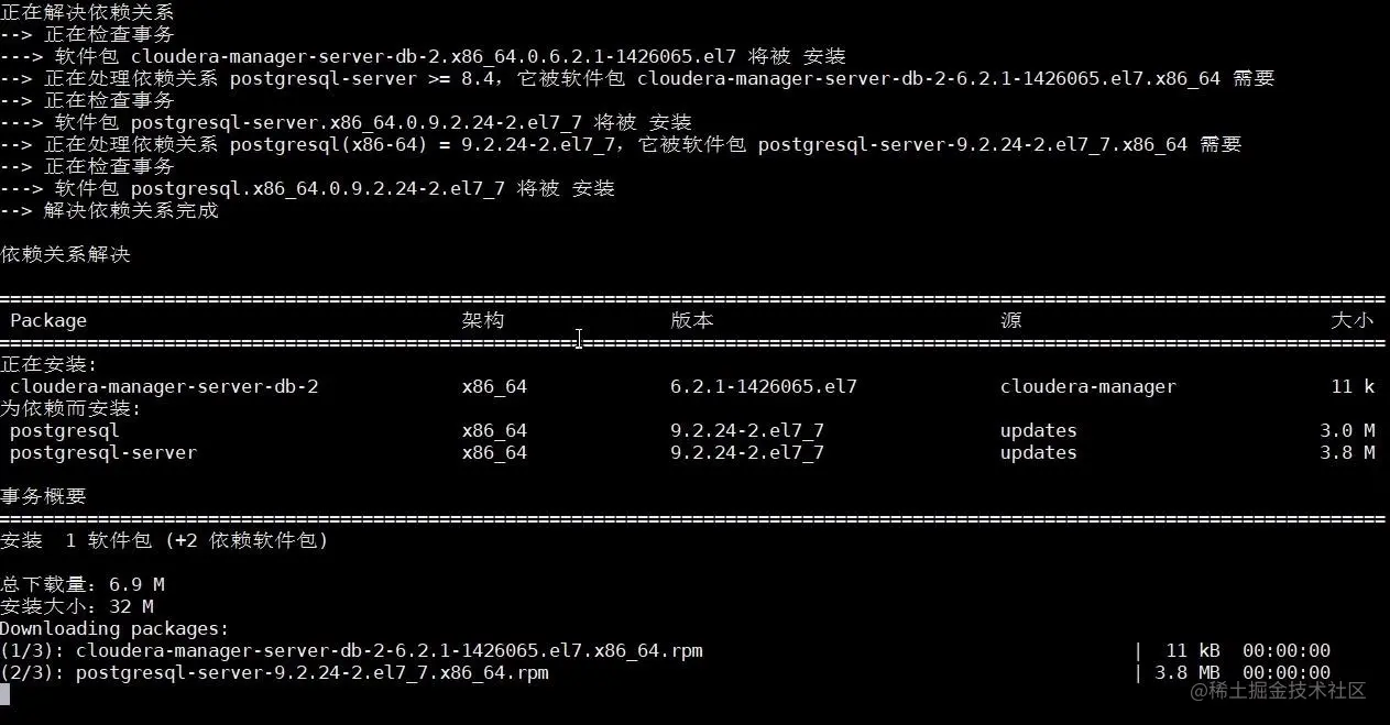 yum install -y oracle-j2sdk1.8-1.8.0+update181-1.x86_64 yum install -y enterprise-debuginfo-6.2.1-1426065.el7.x86_64 yum install -y cloudera-manager-server-6.2.1-1426065.el7.x86_64 yum install -y cloudera-manager-server-db-2-6.2.1-1426065.el7.x86_64