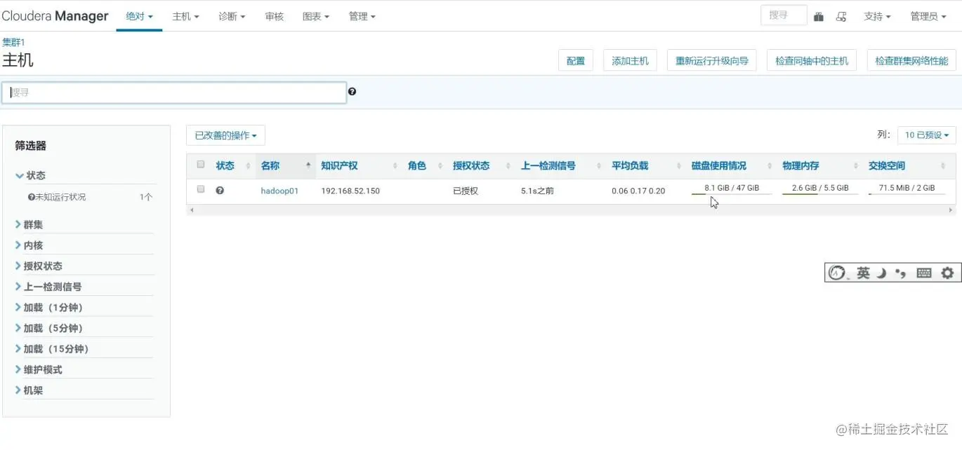 (Hadoop、Hive、Spark、Kudu)。其特点:应用程序的安装过程自动化,将部署时间从几周缩短到几分钟; 并提供运行主机和服务的集群范围的实时监控视图; 提供单个中央控制台,以在整个群集中实施配置更改; 并集成了全套的报告和诊断工具,可帮助优化性能和利用率。