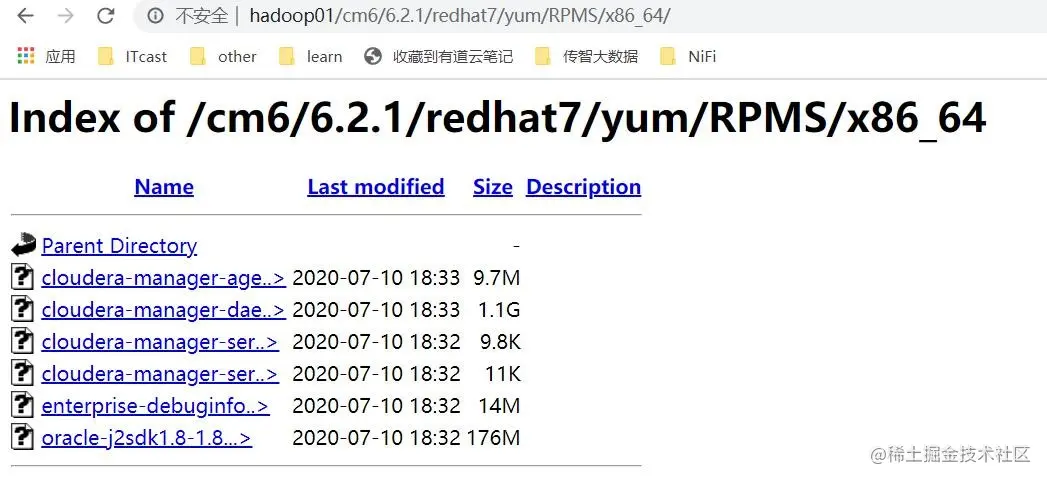 访问测试:http://hadoop01/cm6/6.2.1/redhat7/yum/RPMS/x86_64/