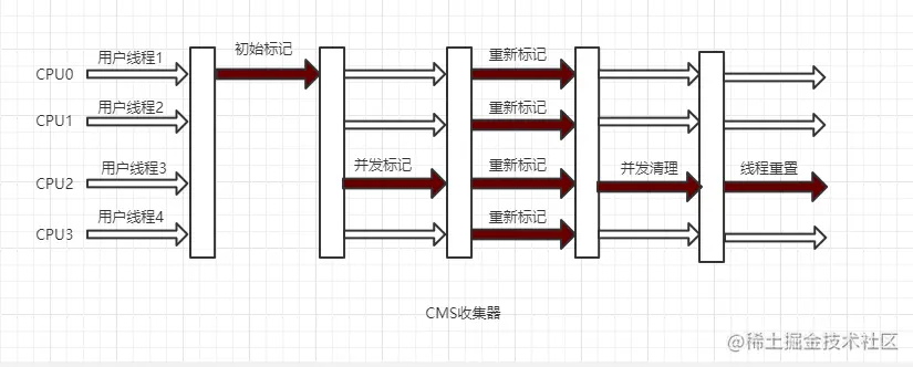 - 多线程 :CMS 采用的是多线程的标记-清除算法;
