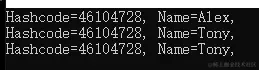 Console.WriteLine("Hashcode={0}, Name={1},",Jia.GetHashCode(), Jia.Name);