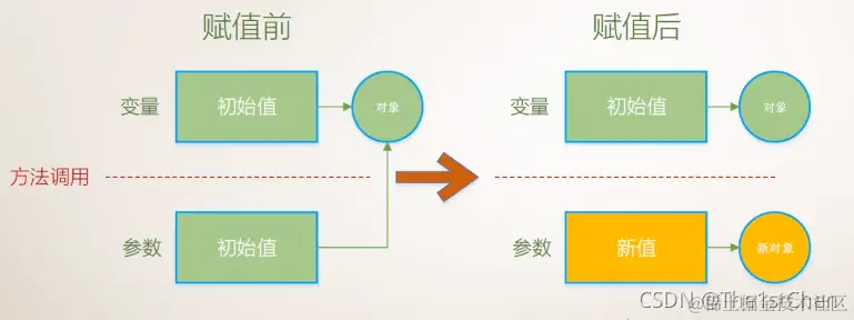 //此时的实参已经在方法体内部变成了形参并且在方法体内部创建了新的对象给形参赋予了新值