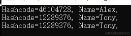 Console.WriteLine("Hashcode={0}, Name={1},", stu.GetHashCode(), stu.Name);