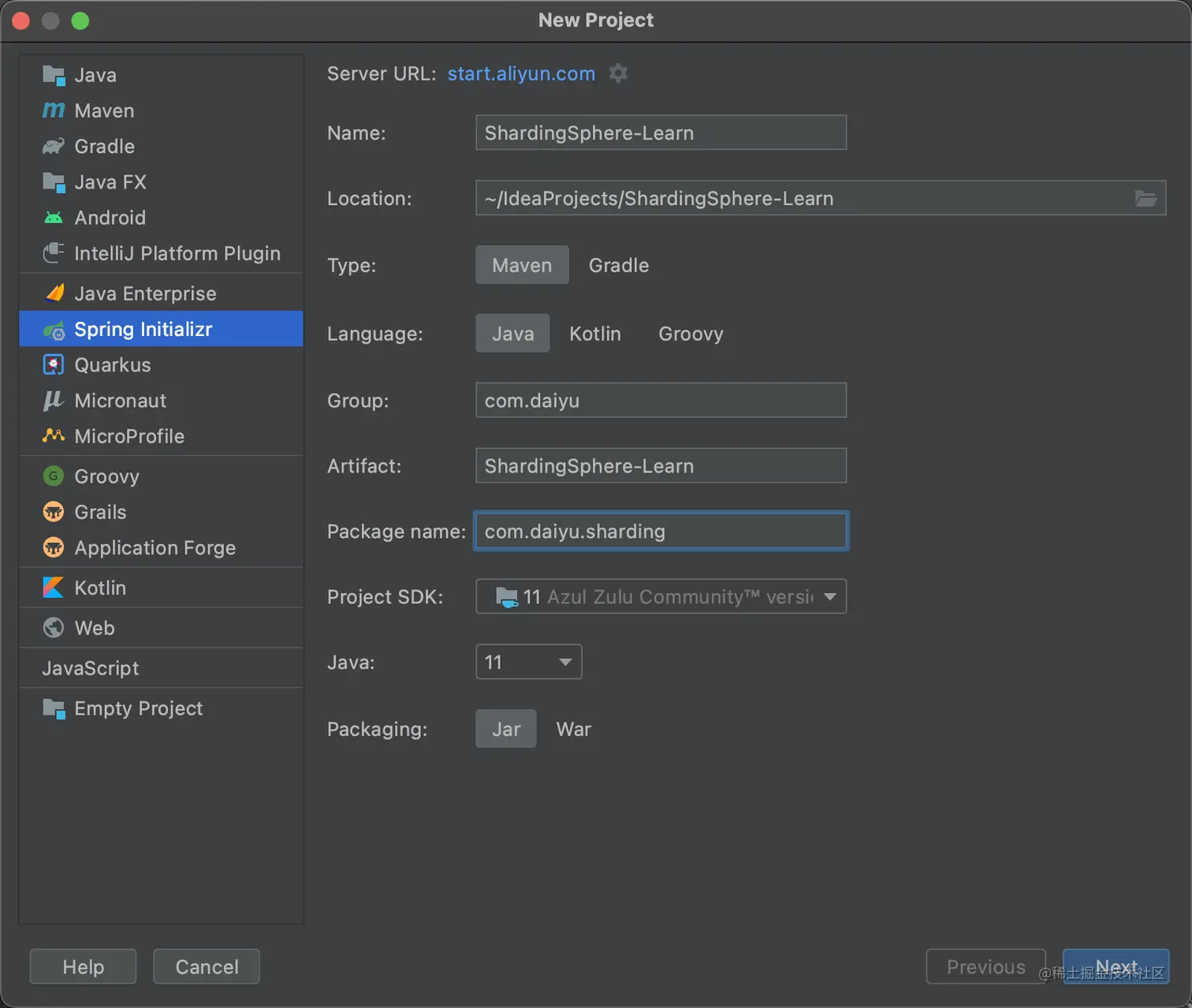 本本文章是基于ShardingSphere最新的版本5.2.0搭建,首先我们点击idea的File->New->Project新建一个项目。
