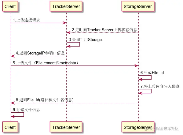Storage server会连接集群中所有的Tracker server,定时向他们报告自己的状态,包括磁盘剩余空间、文件同步状况、文件上传下载次数等统计信息。