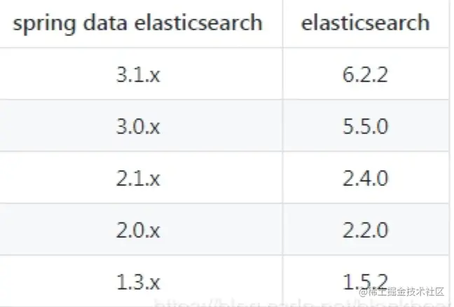 在新版本的Spring boot2.x中,spring-boot-starter-data-elasticsearch支持的Elasticsearch版本是2.X,但Elasticsearch实际上已经发展到6.5.X版本了,为了更好的使用Elasticsearch的新特性,我们可以弃用spring-boot-starter-data-elasticsearch依赖,改为直接使用Spring-data-elasticsearch,以便启用对新版本支持,目前的版本对应关系如下: