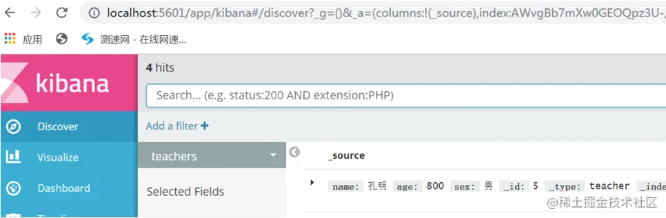 此时发现kibana中已经有了索引数据,说明我们之前添加的索引操作是成功的。