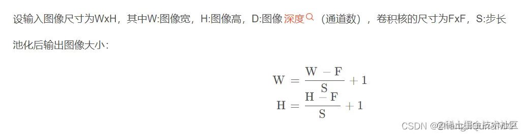 2、池化层(MaxPool Layer)的输出张量(图像)的大小 定义如下: O=输出图像的尺寸。 I=输入图像的尺寸。 S=移动步长 PS=池化层尺寸 输出图像尺寸的计算公式如下: 在这里插入图片描述
